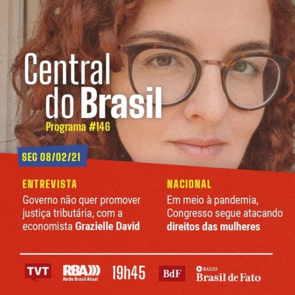 O programa Central do Brasil dessa segunda-feira (08) apresenta uma entrevista com a economista Grazielle David com o tema: Governo não quer promover justiça tributária. O programa também vai abordar outros temas relevantes, como: Em meio à pandemia, Congresso segue atacando direitos das mulheres.