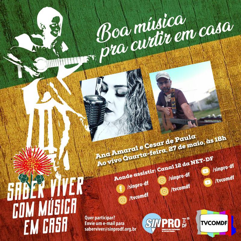 O Sinpro apresenta nesta quarta-feira (27), às 18h, mais uma edição do Saber Viver com Música em Casa. Para embalar a categoria com uma boa música, foram convidados os professores César de Paula e Ana Amaral.