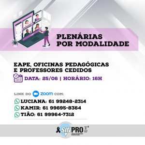 Lembramos que é imprescindível a participação de todos(as) no encontro remoto. Compartilhe com seus colegas e nos grupos da sua escola, e reserve este momento na sua agenda para participar das plenárias. Caso algum(a) professor(a) não tenha disponibilidade no dia da sua modalidade, ele(a) poderá participar das próximas (confira o cronograma ao final da matéria).