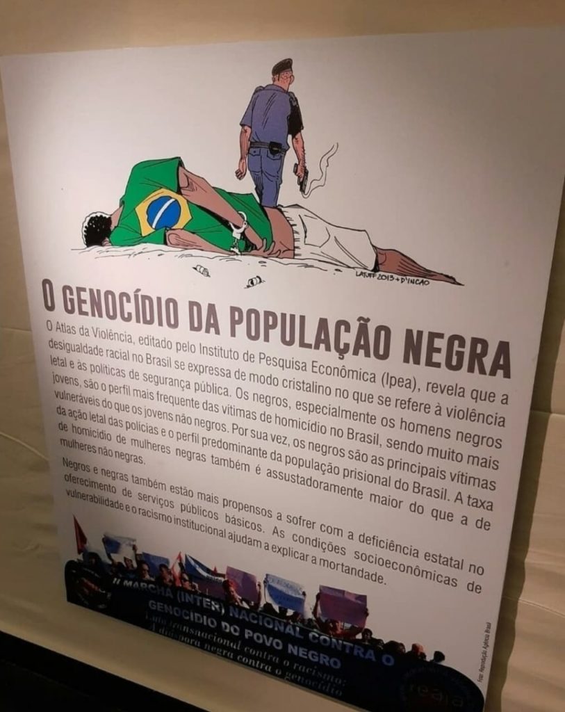 O vandalismo do deputado contra a obra do cartunista mostra, sobretudo, o gesto autoritário de alguém que não suporta ver a realidade que cerca a vida da população negra brasileira. Em setembro deste ano, o Fórum Brasileiro de Segurança Pública divulgou a 13ª edição do Anuário da Violência.