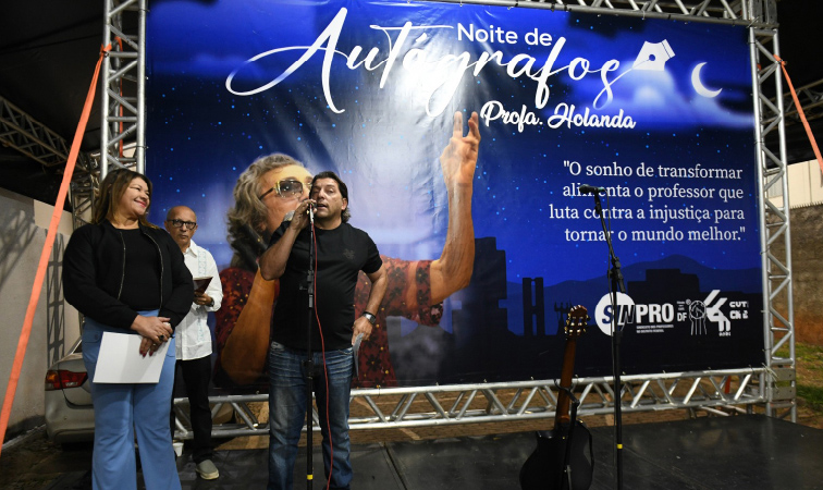 O evento contou com uma emocionante homenagem à professora Holanda, que nos deixou em junho, e também era autora. Sua filha, Jaqueline Lopes Carvalho, recebeu uma placa de homenagem e agradecimento, além do carinho que toda a categoria tinha por sua mãe. O público recebeu um poema impresso de Holanda, publicado em 1998 em seu livro O Grito.