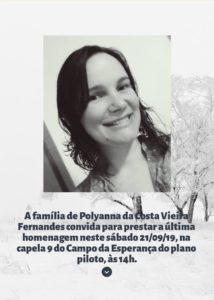 É com grande pesar que a diretoria do Sinpro informa o falecimento da professora Polyanna da Costa Vieira Fernandes. A educadora trabalhava na Escola Classe 510 do Recanto das Emas.