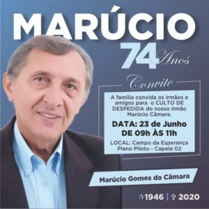 Amanhã (23), ocorrerá das 09h às 11h da manhã, o culto de despedida do nosso companheiro no Cemitério Campo da Esperança- Plano Capela 02.