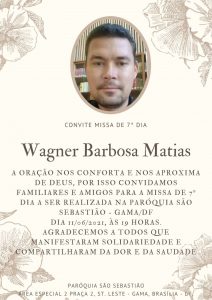 Com tristeza e consternação, o Sinpro informa o falecimento do professor Wagner Barbosa Matias, ocorrido na manhã deste sábado, 5 de junho. Wagner lutava contra complicações da Covid-19 e foi mais um dos 8.766 brasilienses que foram a óbito em decorrência da doença e do descaso dos governantes.
