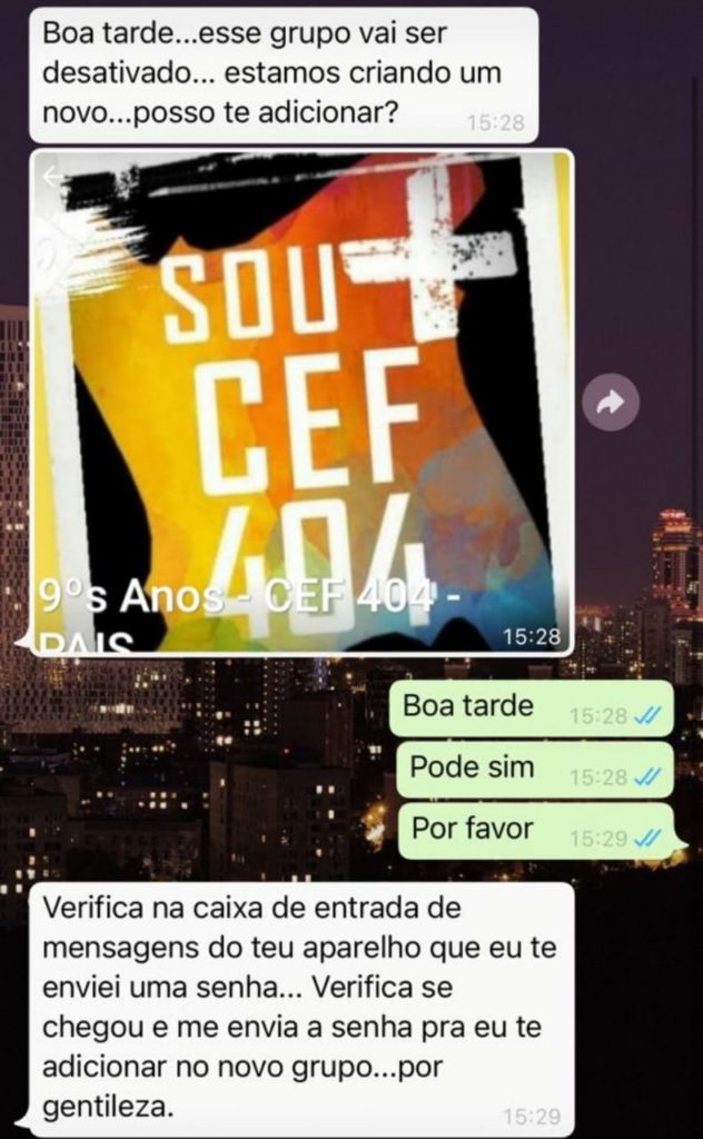 Novo golpe em grupos de WhatsApp das escolas. Denuncie!