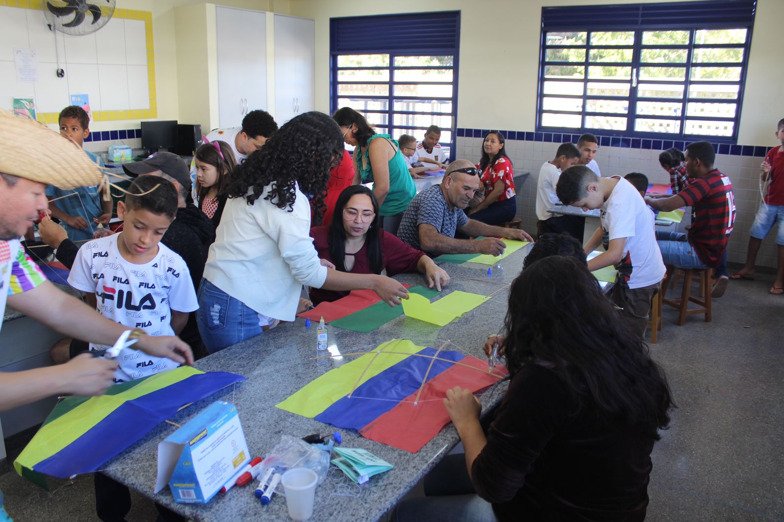 Oficina de pipa é uma das atividades realizadas no Dia de Quem Cuida da Gente