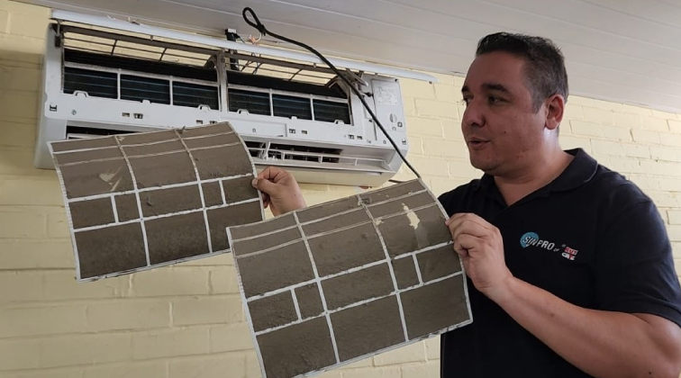No Centro de Ensino Fundamental 33 de Ceilândia (CEF 33 de Ceilândia), verificou-se a uma situação perigosa nos ares-condicionados. Em vídeo e fotos, o diretor do Sinpro mostra a situação dos filtros do equipamento.