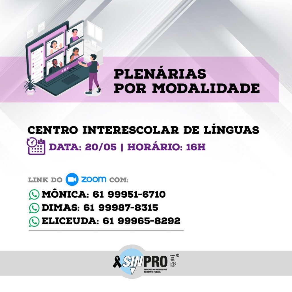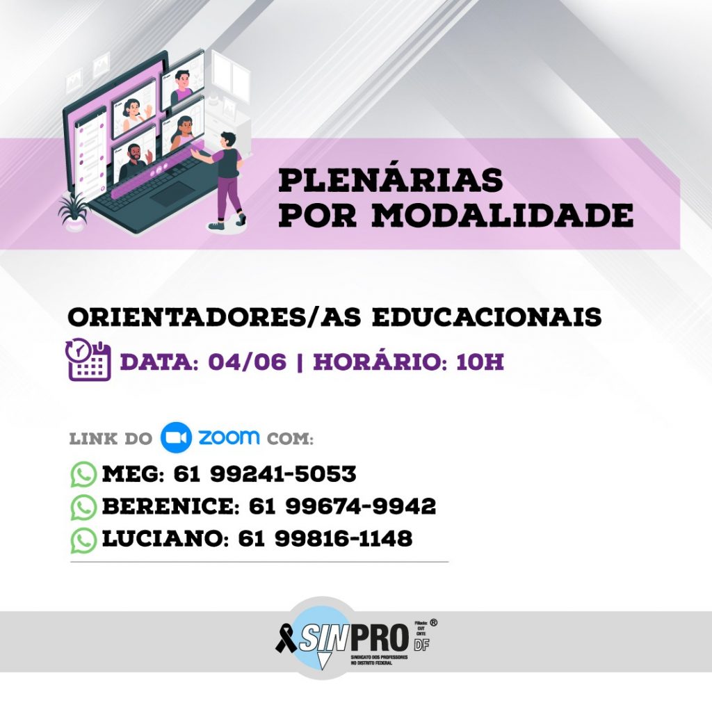 Vivemos em um momento crucial de enfrentamento ao desmonte do Estado e à retirada de direitos da classe trabalhadora. Diante disso, precisamos nos unir ainda mais e manter a mobilização contra a reforma Administrativa; contra o PL 5595 (retorno presencial às escolas mesmo sem vacina); pela derrubada do veto ao PL 3477 (garantia de acesso à internet para fins educacionais); por vacina já; por nomeações e concurso público; e pela defesa do cumprimento, pelo GDF, da decisão do TJ (reajuste).