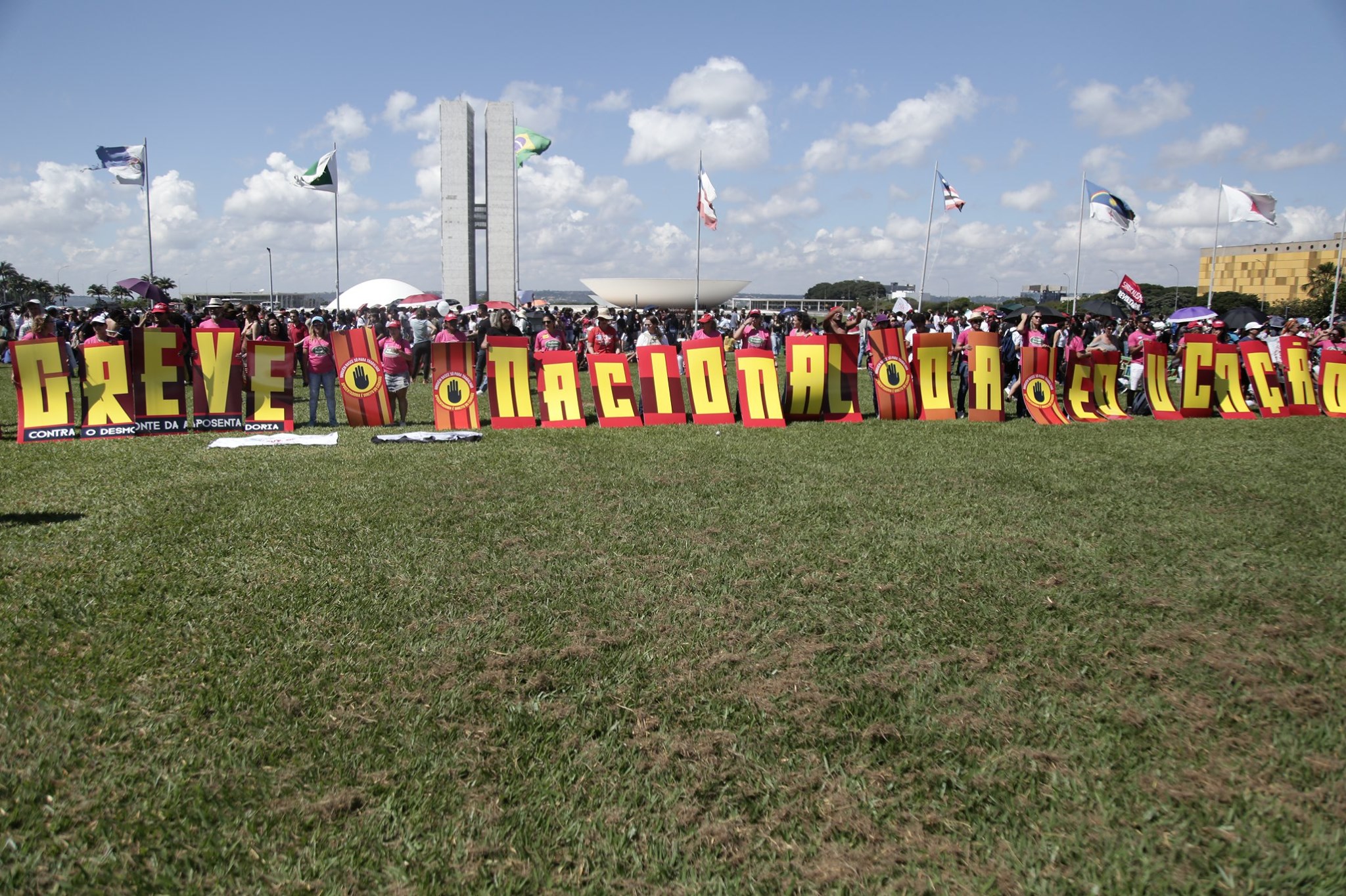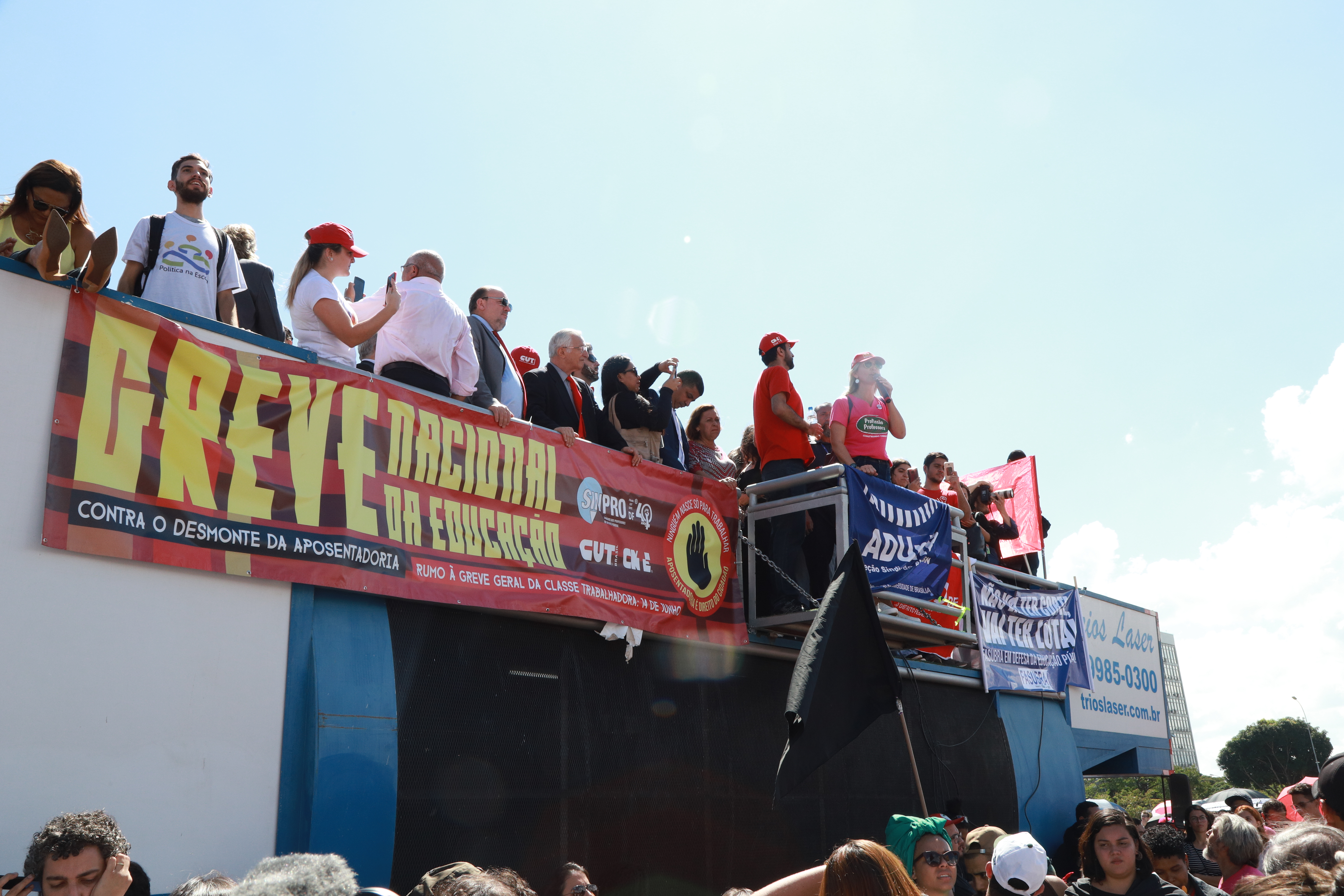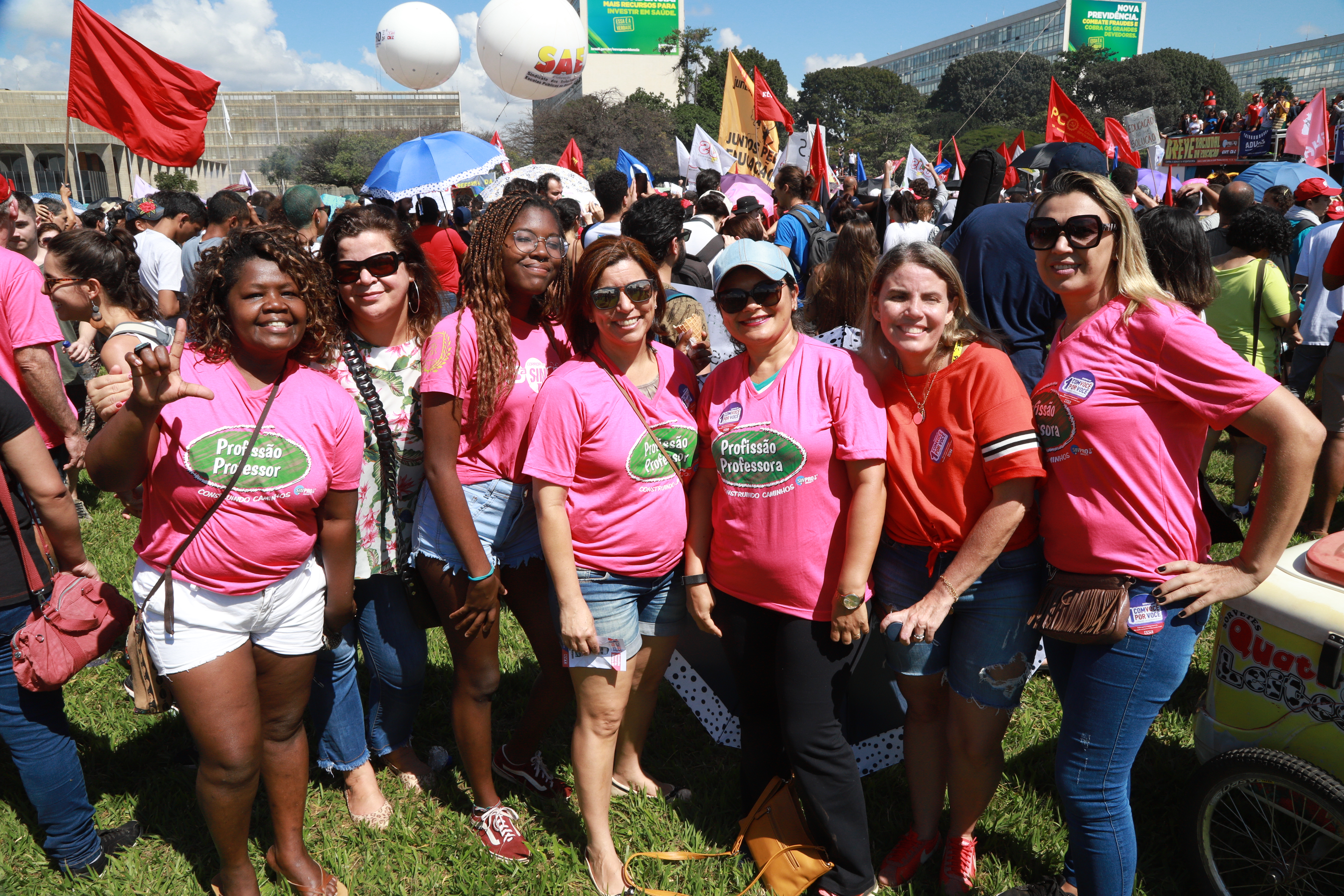Professores(as) e orientadores(as) vieram de todas as regiões administrativas do Distrito Federal participar do ato em defesa da Educação, da aposentadoria e contra as políticas de retrocessos apresentadas pelo governo federal. Unidos aos demais trabalhadores e estudantes da capital federal, marcharam do Museu Nacional da República até o Congresso Nacional, e depois retornaram em marcha até a Rodoviária do Plano Piloto.