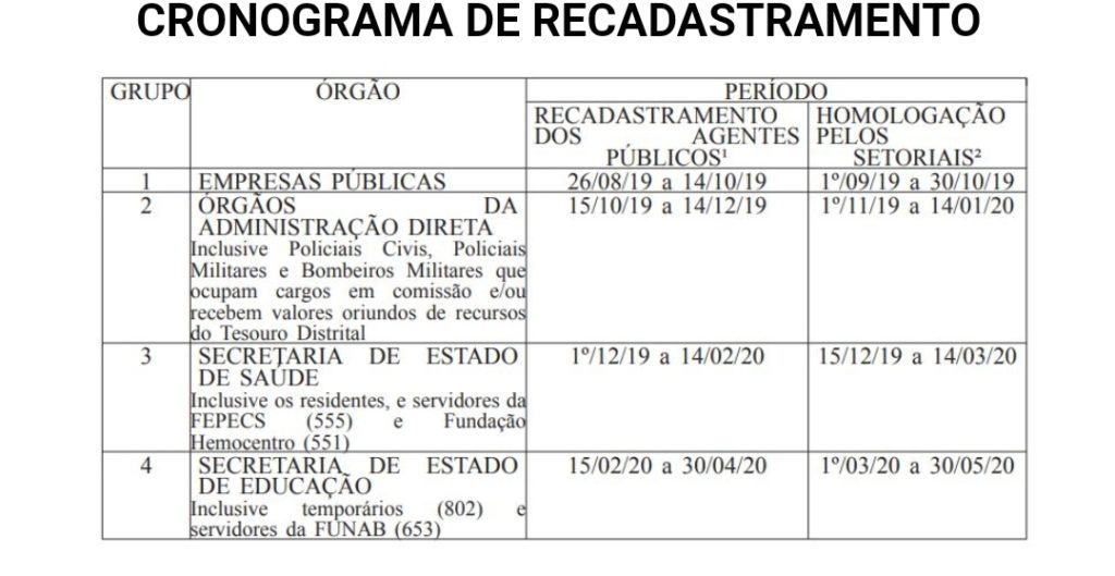 Todos  servidores(as) inclusos no grupo 4, formado por trabalhadores(as) da Secretaria de Educação, inclusive os de cargos comissionados e professore(as)s temporários, bem  como os(as) servidores(as) ativos da Fundação Universidade Aberta (Funab) também devem fazer o recadastramento nesta etapa.