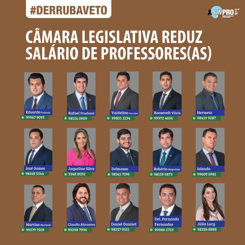 A ferramenta Educação Faz Pressão, do Sinpro-DF, vem sendo uma das mais utilizadas no processo de cobrança pela derrubada do veto de Ibaneis. Segundo fonte do Sinpro-DF na CLDF, na semana passada, parlamentares comentavam entre si, com tom de preocupação, que estavam recebendo centenas de mensagens por dia, via email, telefone e redes sociais, cobrando que o veto de Ibaneis fosse derrubado.
