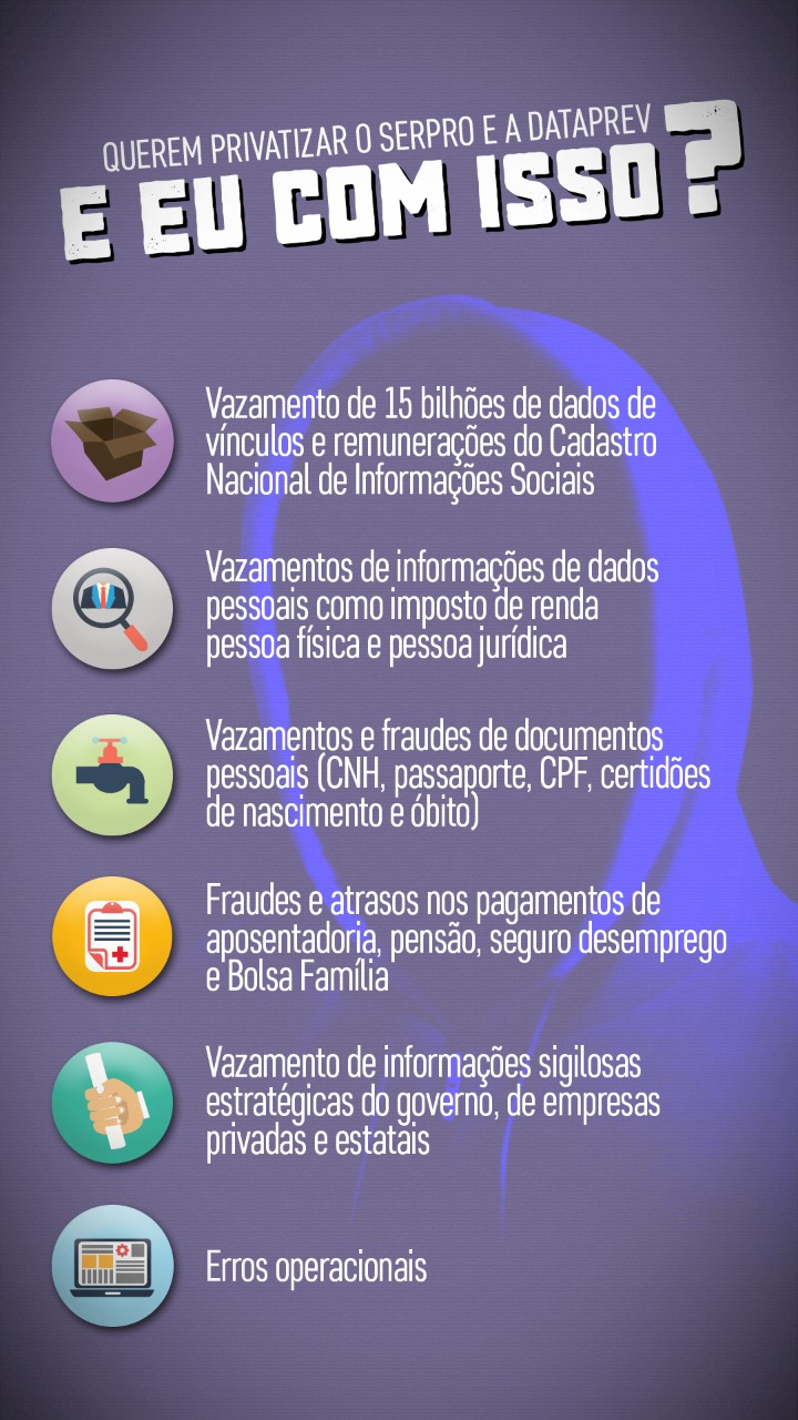 A privatização do Serpro e da Dataprev, responsáveis por dados sigilosos do governo e de todos os brasileiros, coloca em risco o país e a sua vida. Saiba como