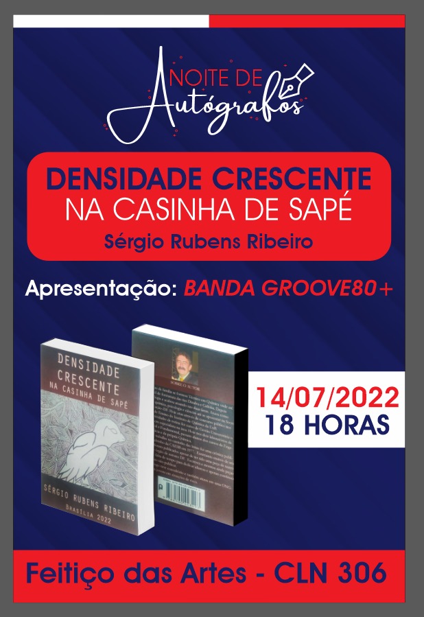 O professor Sergio Rubens Ribeiro lança seu livro de estreia, Densidade Crescente na Casinha de Sapê, amanhã, no Feitiço das Artes (CLN 306) a partir das 18h.