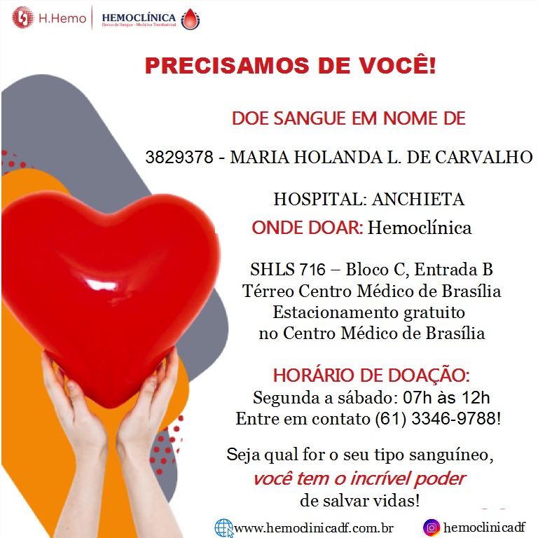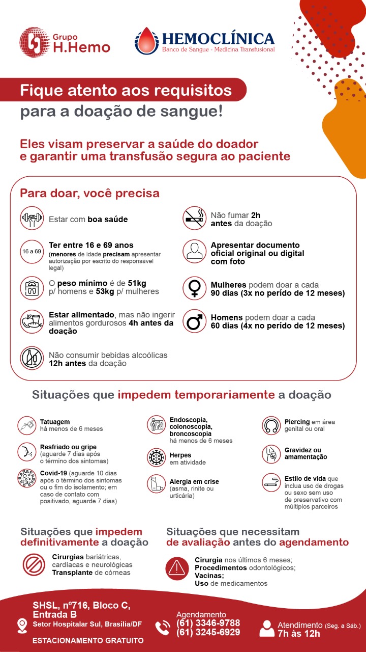 Qualquer dúvida, o telefone de contato da Hemoclínica é (61) 3346-9788