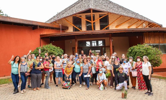 Professoras e orientadoras educacionais aposentadas participam de oficina na Chácara do Sinpro