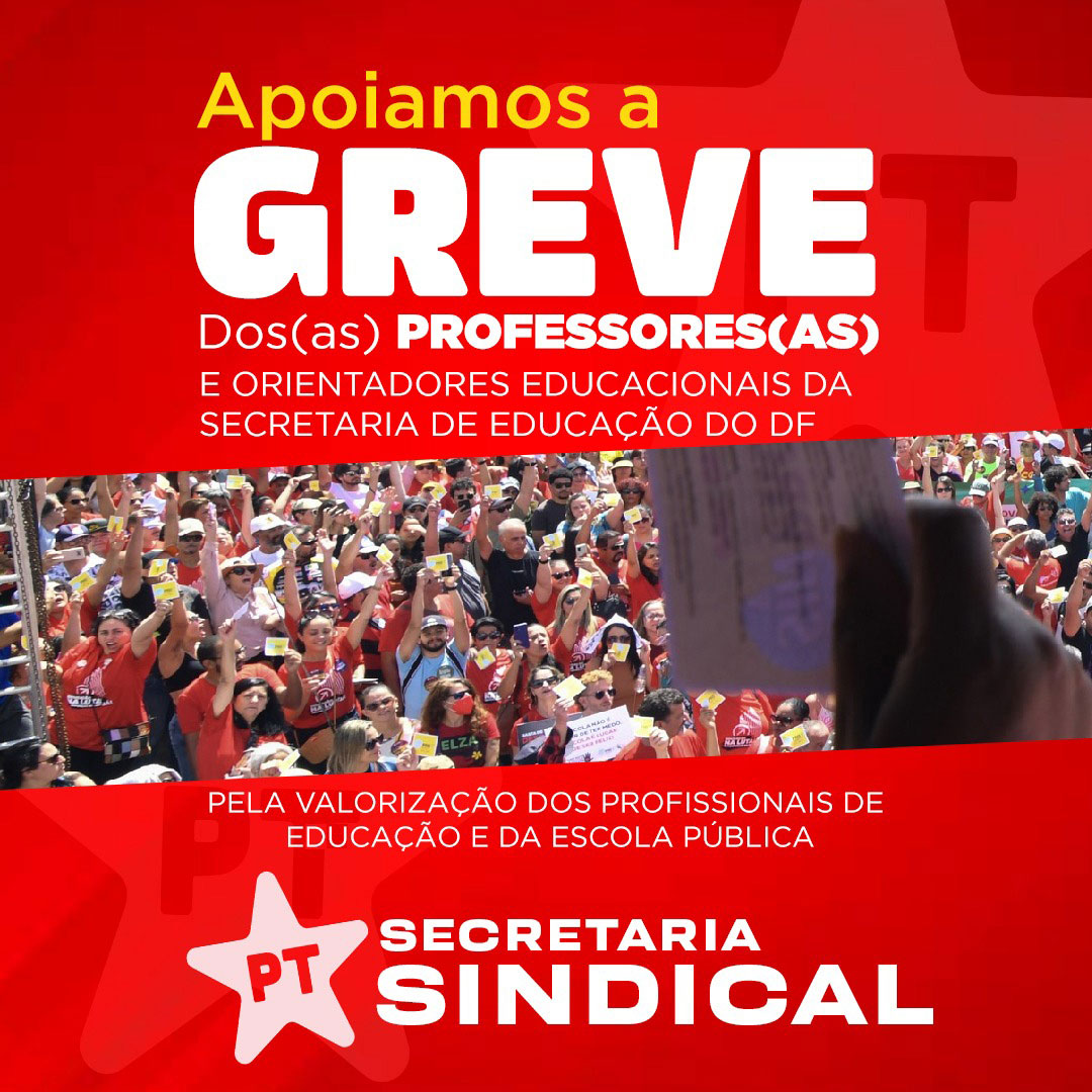 A secretaria sindical do partido também está mobilizada em apoio às ações de greve da categoria do magistério distrital. Em card divulgado, a secretaria defende a valorização dos profissionais de educação e da escola pública.