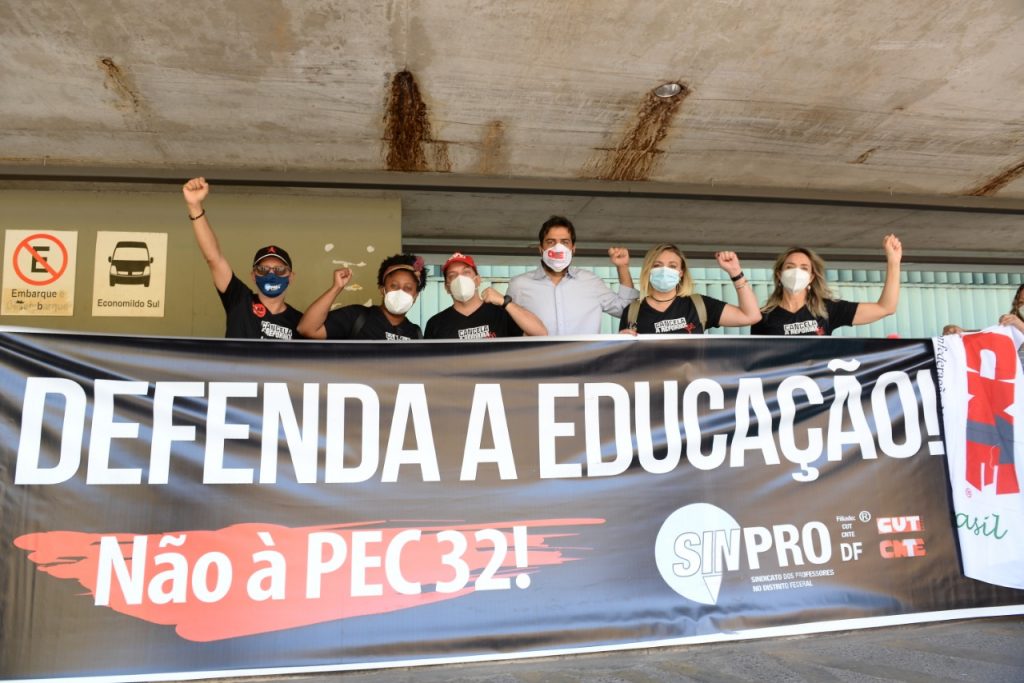 Ao lado de diversas categorias, o Sinpro esteve presente à Câmara em mobilização contra a PEC. A resistência dos trabalhadores e trabalhadoras, bem como os destaques apresentados pelos líderes, apontando as inconsistências no texto, foram fundamentais para o recuo dos defensores da PEC.