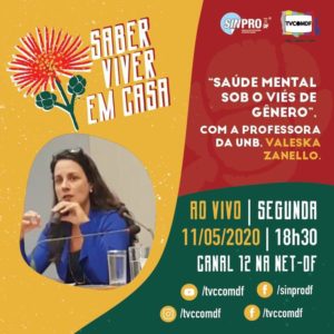 No programa Saber Viver em Casa desta segunda-feira (11), os diretores do Sinpro-DF, Gilza Camilo e Hamilton Caiana conversarão com a professora da Universidade de Brasília (UnB), Valeska Zanello sobre saúde mental sob o viés de gênero.