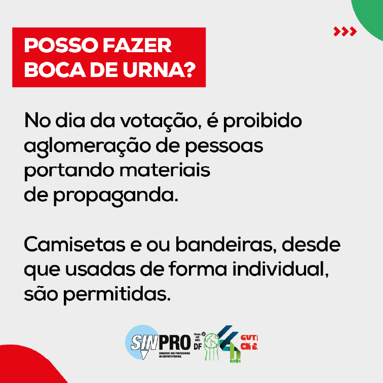 No dia da votação, é proibido aglomeração de pessoas portando instrumento de propaganda.