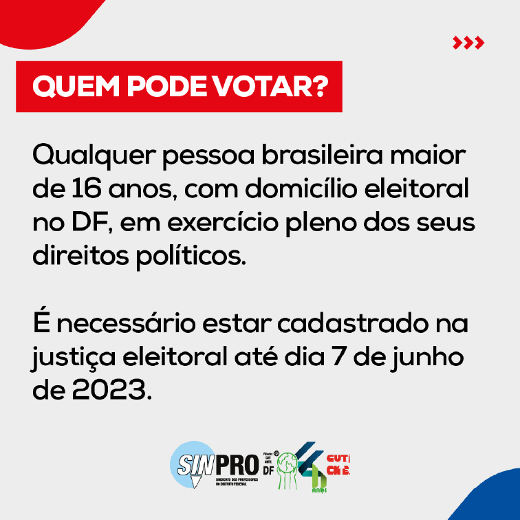 Se você tem 16 anos ou mais, está em exercício pleno dos seus direitos políticos e tem domicílio eleitoral no DF, você está apto(a) a votar.