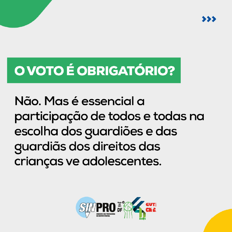 Dia 1º de outubro é dia de votar no conselheiro ou na conselheira tutelar da sua região administrativa. Embora o voto não seja obrigatório, é essencial participar da escolha dos guardiões e guardiãs dos direitos das nossas crianças e adolescentes.