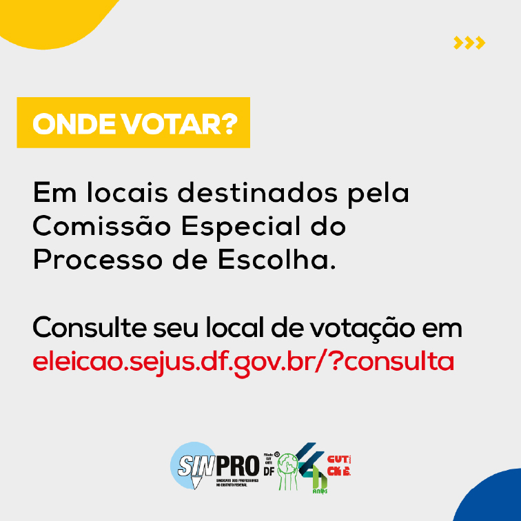 Consulte seu local de votação em eleicao.sejus.df.gov.br/?consulta