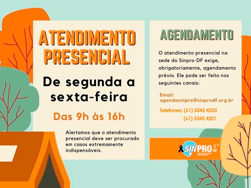 O setor jurídico do Sinpro-DF manterá o atendimento de forma remota. Os advogados atenderão as/os filiadas/os via chamada de vídeo e ligação telefônica, das 8h às 12h e das 13h15 às 18h. É necessário agendamento prévio.