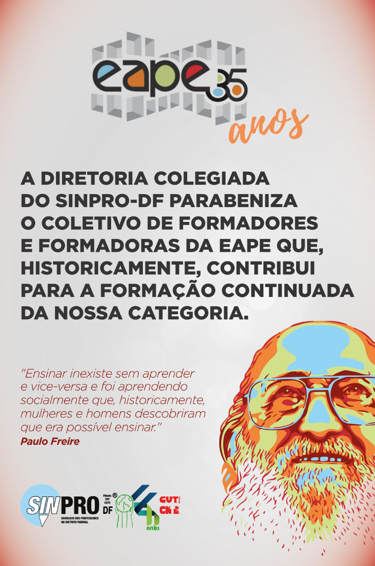 De 7 a 14 de agosto, a Subsecretaria de Formação Continuada (EAPE) realizará a Semana de Formação Continuada. O evento marca os 35 anos da instituição e o Dia da Formação Continuada no Distrito Federal. Inscrições para as oficinas e apresentações de trabalhos pelo endereço eletrônico eadeape.se.df.gov.br.