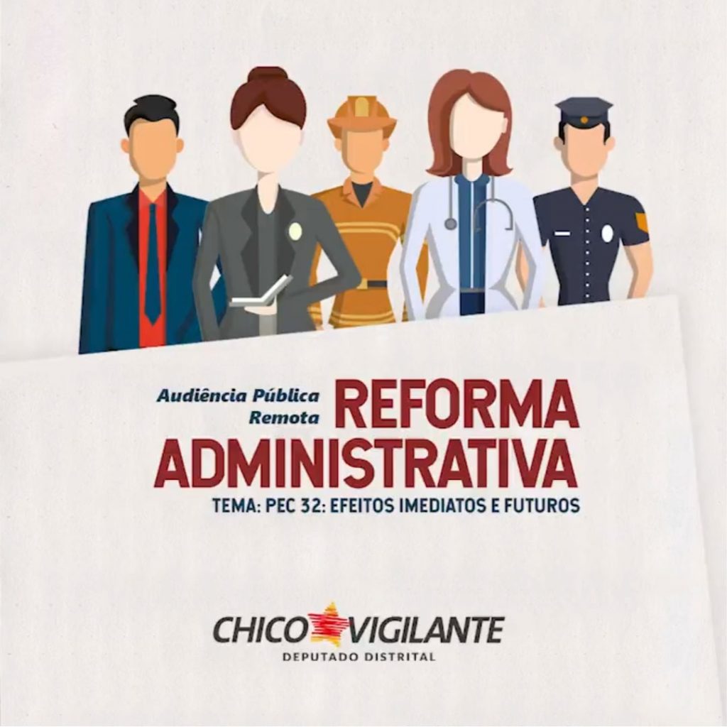 Também na quarta-feira (26), às 19h, o deputado distrital Chico Vigilante realiza uma audiência pública remota com o tema: PEC 32 – Efeitos imediatos e futuros. A audiência será transmitida ao vivo pelo Facebook e Youtube do parlamentar, e pelas redes sociais do Sinpro.