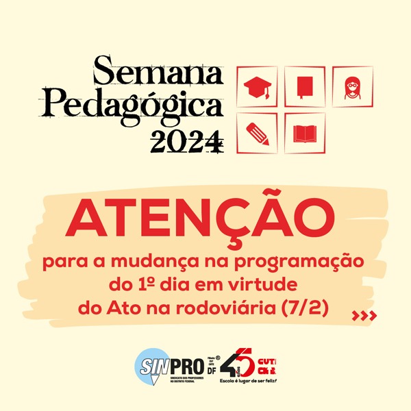 Semana Pedagógica do Sinpro – Atenção para a mudança na programação em virtude do Ato pela Educação Pública