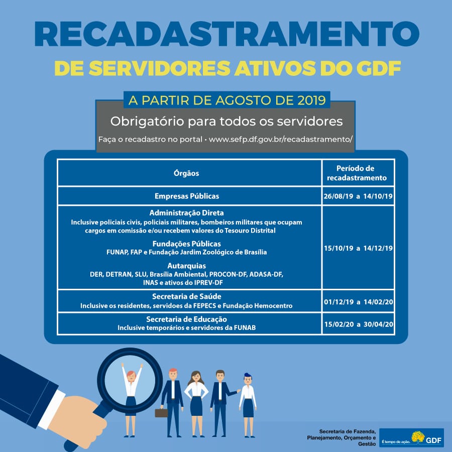 O recadastramento obrigatório faz parte da atualização de dados que GDF tem feito desde agosto de 2019 e da implantação de um novo sistema de gestão de pessoas e produção da Folha de Pagamento, o Sigepe-DF, e, nesse caso, o recadastramento é fundamental para assegurar que os dados a serem inseridos no novo sistema estejam atualizados.
