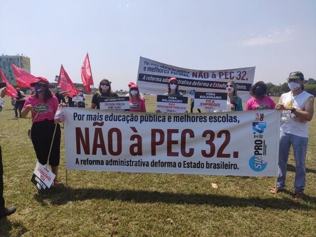 Reunidos no canteiro central da Esplanada dos Ministérios nesta quarta-feira (30), representantes de servidores públicos realizaram o primeiro ato que compõe a Campanha Nacional em Defesa das Estatais e do Serviço Público. De frente para o Congresso Nacional, onde tramita a reforma administrativa (PEC 32/2020) do governo Bolsonaro-Guedes, as representações sindicais reafirmaram que a proposta não prejudica apenas atuais e futuros servidores públicos, mas toda a sociedade. Ações como a do DF são realizadas em todo Brasil.