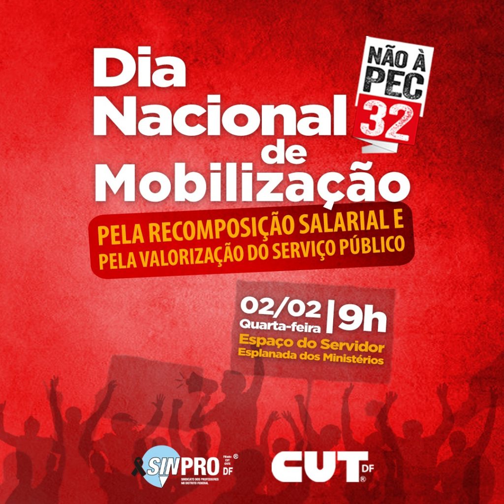 Servidores públicos das três esferas – municipal, estadual e federal – realizarão Dia Nacional de Mobilização Pela Recomposição Salarial e Pela Valorização do Serviço Público, nesta quarta-feira (2/2), com ações em todo o país. No DF, a atividade será no Espaço do Servidor, na Esplanada dos Ministérios, a partir das 9h.
