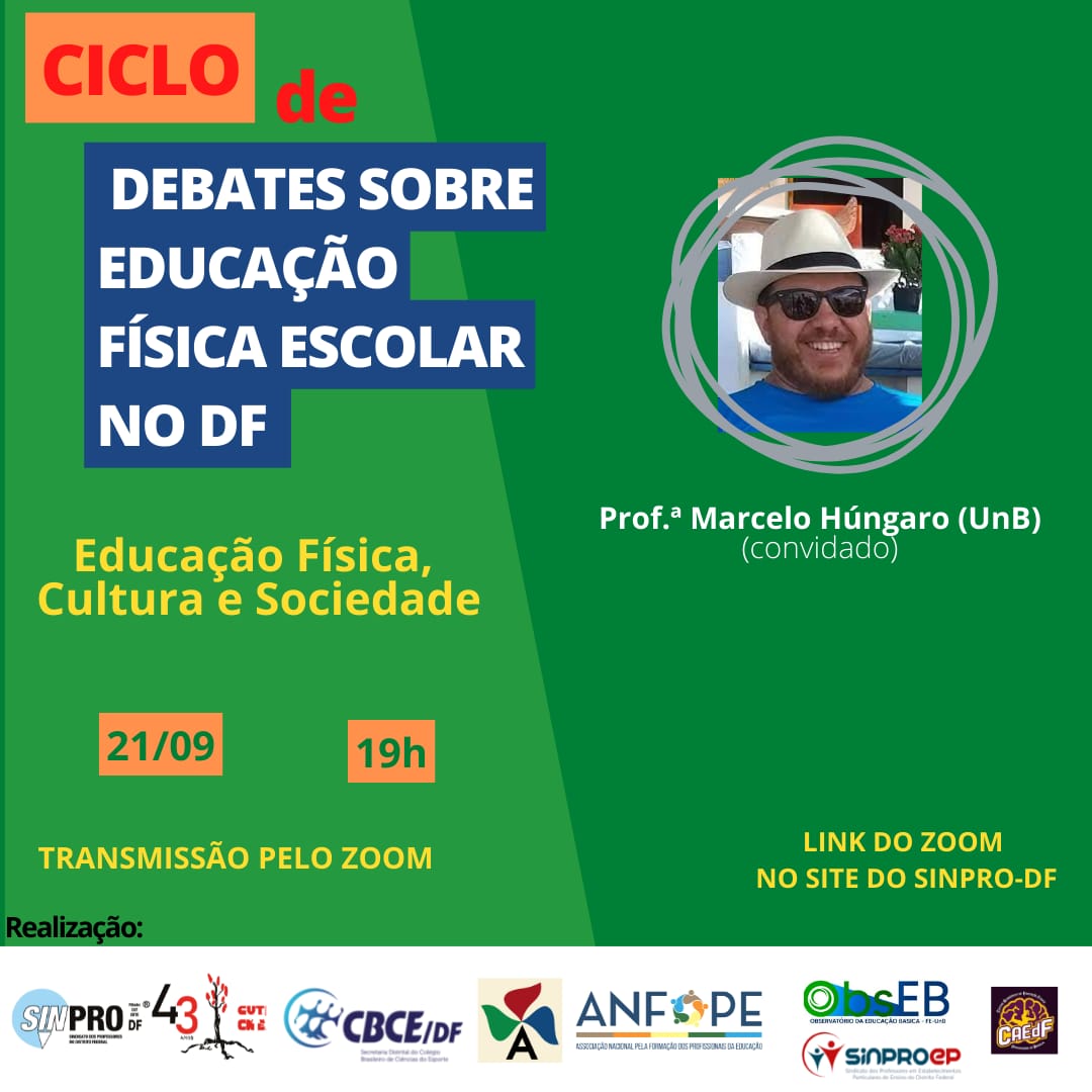 Este é o sétimo encontro do Ciclo de Debates, tendo como convidado o Prof. Marcelo Húngaro, da UnB. Aos participantes será garantida certificação, contanto que tenham ao menos 75% de presença ao final dos encontros. O 2º Ciclo de Debates sobre Educação Física Escolar do Distrito Federal vem sendo realizado desde 24 de agosto e se estende até 5 de outubro, tendo como intuito agregar professores-pesquisadores que estão ou têm interesse em ingressar nos quadros da SEEDF, para organização e estudos sobre Educação Física na rede pública de ensino.