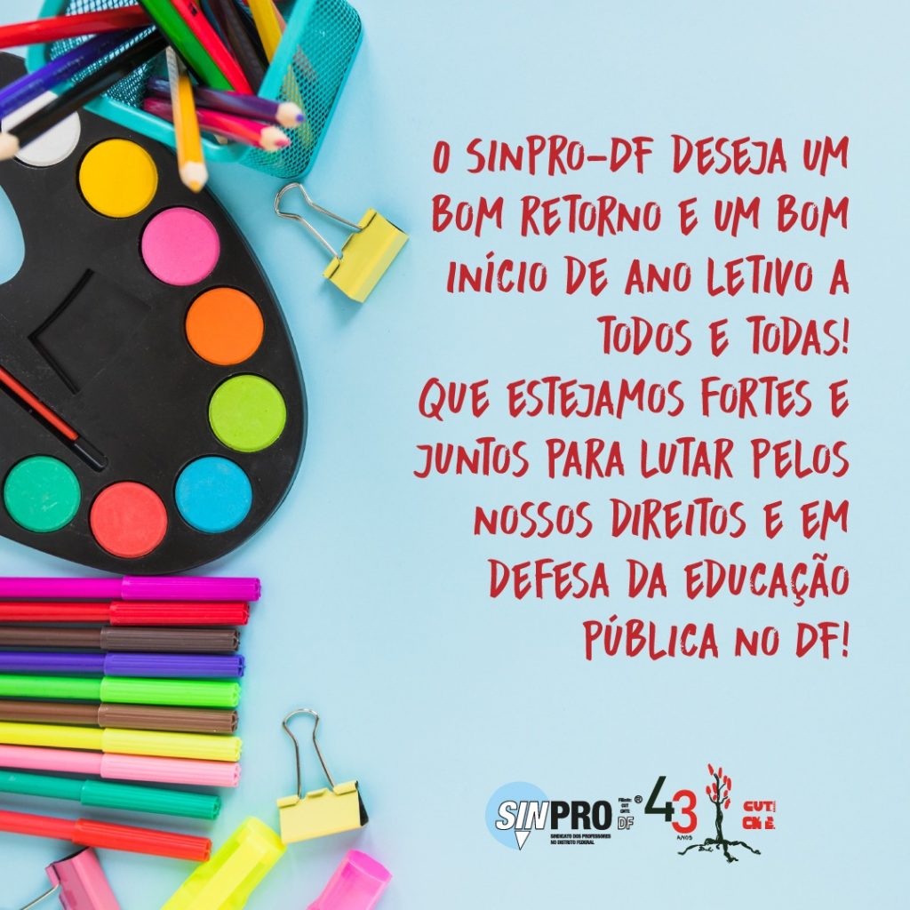 Sendo assim, o sindicato deseja um bom retorno a todos e todas, e que estejamos fortes para lutar pelos nossos direitos e em defesa da educação pública no DF!