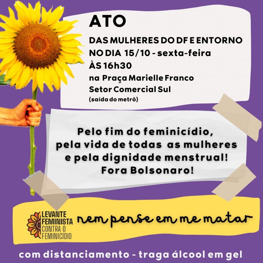 O protesto é uma atividade do Levante Feminista e faz parte da campanha “Nem pense em me matar” pelo fim do feminicídio, pela vida de todas as mulheres, pela dignidade menstrual e pelo “Fora Bolsonaro!”