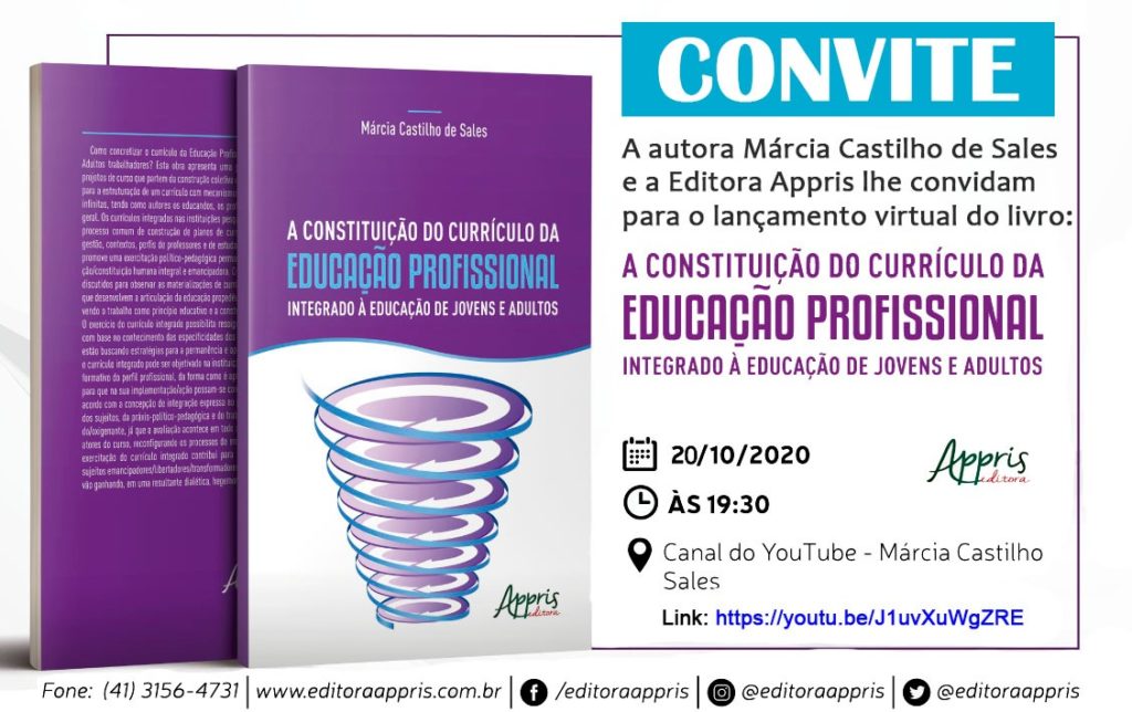 A obra, produzida pela Editora Appris, será lançada por meio de uma live no canal do YouTube da própria autora Márcia Castilho Sales. Para acessar o lançamento, basta clicar no link a seguir: https://youtu.be/J1uvXuWgZRE.