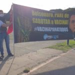 Empunhando faixas que levavam frases como “Você quer vacina? BUZINE”, os manifestantes ” instigaram a população que voltava do trabalho a também deixar seu recado. Durante todo o período em que a faixa ficou aberta, centenas de trabalhadoras e trabalhadores que passavam pelo local se uniram à mobilização com buzinaço.