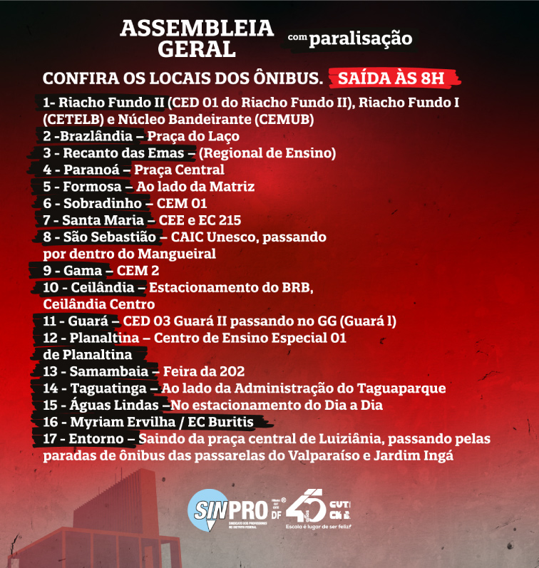 Sinpro disponibiliza ônibus para a assembleia geral desta quarta (20)