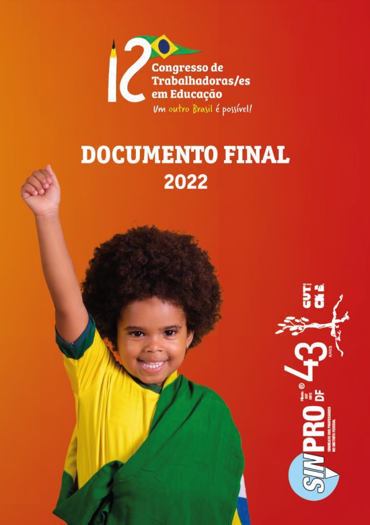 O Documento Final 2022 do 12º CTE traz, em seu conteúdo,as percepções dos(as) professores(as) do magistério público do Distrito Federal que lutam por outro Brasil e outro DF possíveis. Um dos mais importantes capítulos do documento é o Plano de Lutas. Ele faz parte da tese-guia, na qual se faz o reconhecimento da crise socioeconômica profunda que acomete quase 215 milhões de pessoas e do desmonte do Estado brasileiro.