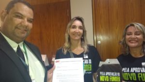Na manhã desta terça-feira (10), a diretoria colegiada do Sinpro visitou os gabinetes dos deputados federais e entregou ofício aos parlamentares reivindicando apoio a Proposta de Emenda à Constituição (PEC) 15/2015 que torna o Fundeb permanente.