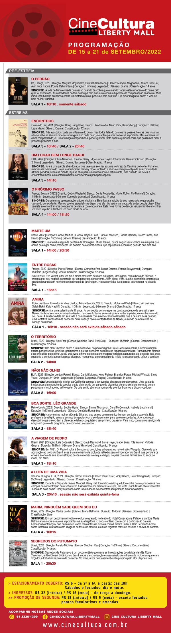 Hoje, 15/09, é dia do Sinpro no cinema, no Liberty Mall. Toda quinta-feira, você, professor(a) e orientador(a) educacional, paga 10 reais na entrada, com direito a um acompanhante que pagará também o mesmo valor.