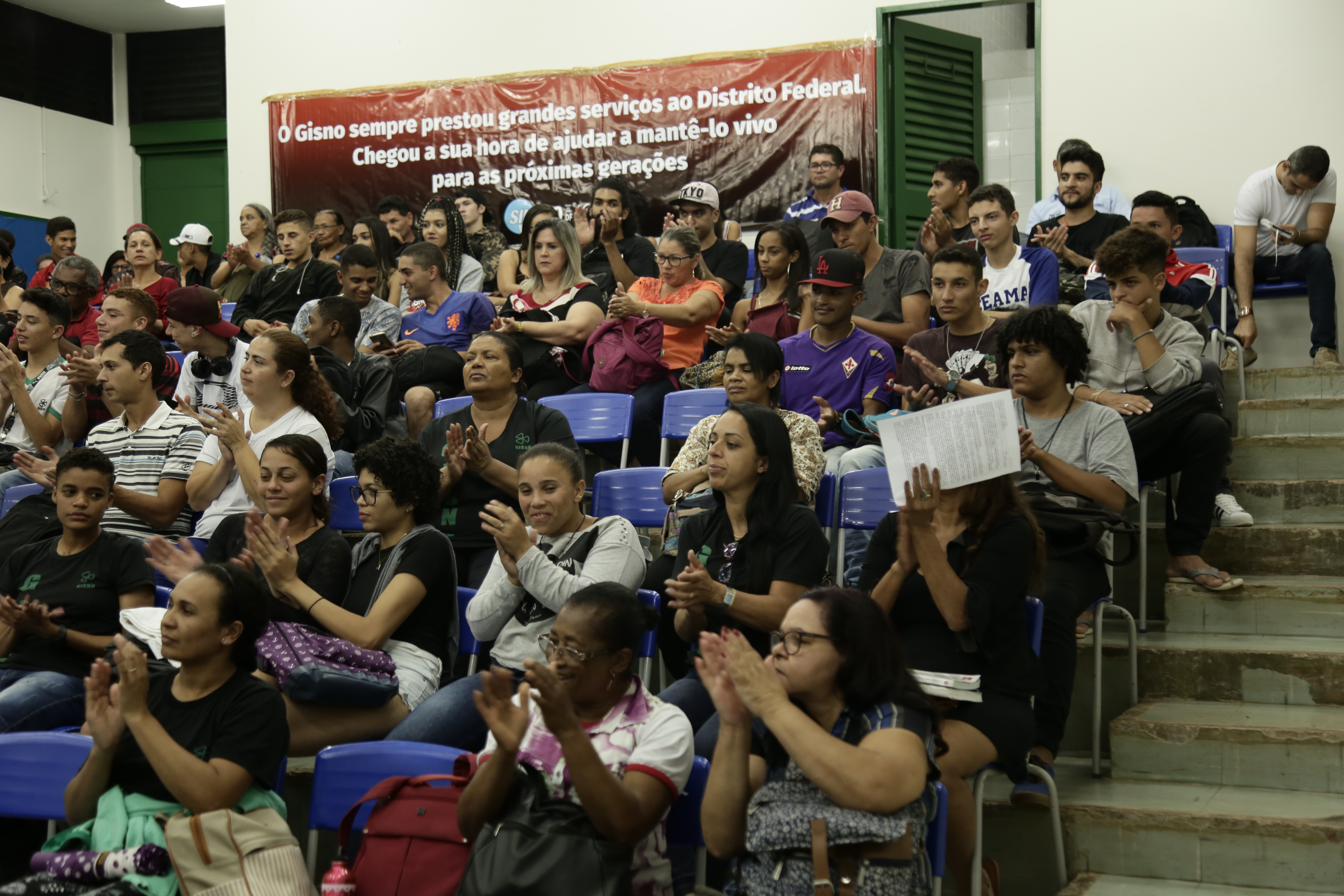O direito a uma educação de qualidade foi um dos argumentos utilizados por Letícia Vieira durante a sua fala. Segundo a diretora, o Sinpro teve uma reunião com o coordenador da regional de ensino assim que soube da possibilidade de fechamento do Gisno. “Quando soubemos, nos colocamos à disposição para ajudar não somente os professores, mas para garantir que os moradores tenham uma educação pública de qualidade. Durante conversa com o coordenador, ele nos garantiu que aumentando o número de matrículas e de frequência, o Gisno não fechará”, afirmou Letícia.