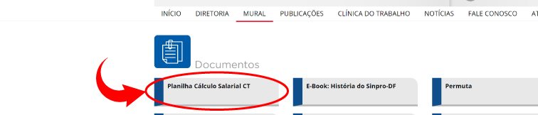 2 – Dentro da aba MURAL, clique na primeira aba intitulada “Planilha Cálculo Salarial CT”.