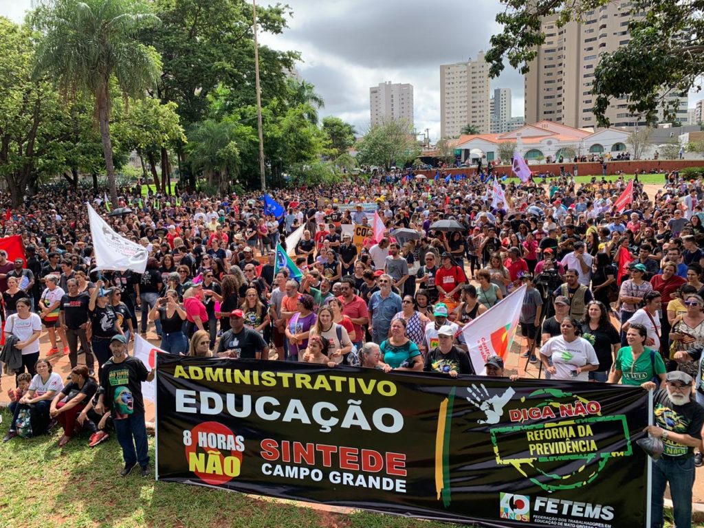 No Mato Grosso do Sul, mais de 10 mil pessoas de 42 municípios do estado se reuniram em Campo Grande para lutar pelo direito de ter uma aposentadoria digna na velhice. Milhares de trabalhadores e trabalhadoras tomaram a Praça do Rádio, onde se concentraram para seguir em caminhada pelas ruas da cidade.