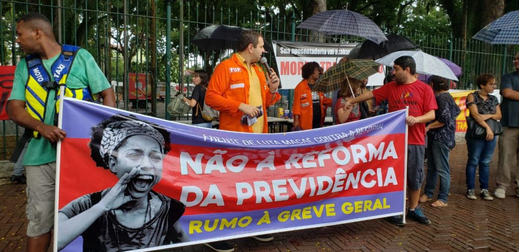 No Rio de Janeiro, trabalhadores da zona industrial de Santa Cruz, na zona oeste da cidade, protestaram contra a reforma da Previdência. Os petroleiros fizeram atos na Refinaria de Duque de Caxias (Reduc), na Baixada Fluminense. Teve panfletagem também no Largo do Machado.