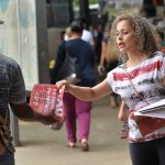 Trabalhadores(as) participam de panfletagem contra a reforma da Previdência