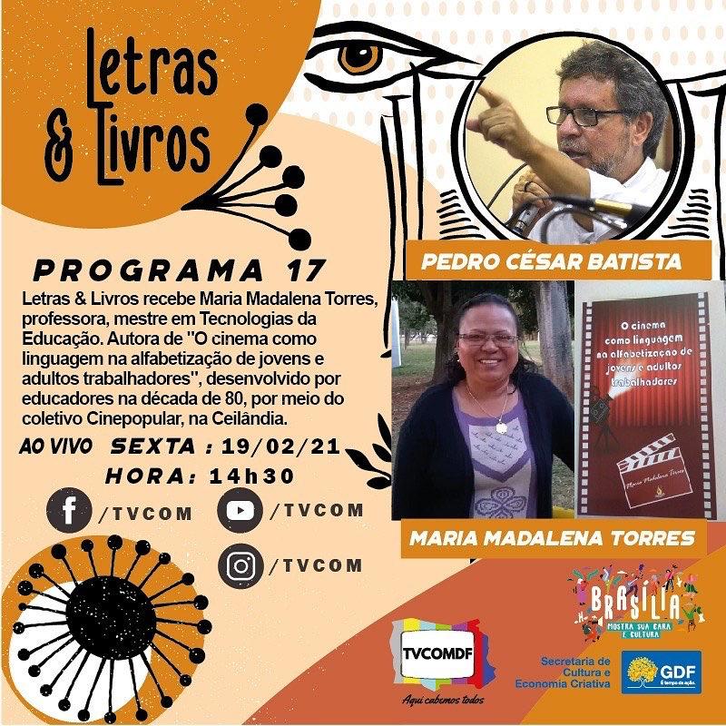 A professora Maria Madalena Torres será a entrevistada da vez do @tvcomdf Letras & Livros. O programa será exibido ao vivo nesta sexta-feira (19), às 14h30, e para acompanhar, basta acessar o Canal 12 da NET ou a fanpage da TV Comunitária.