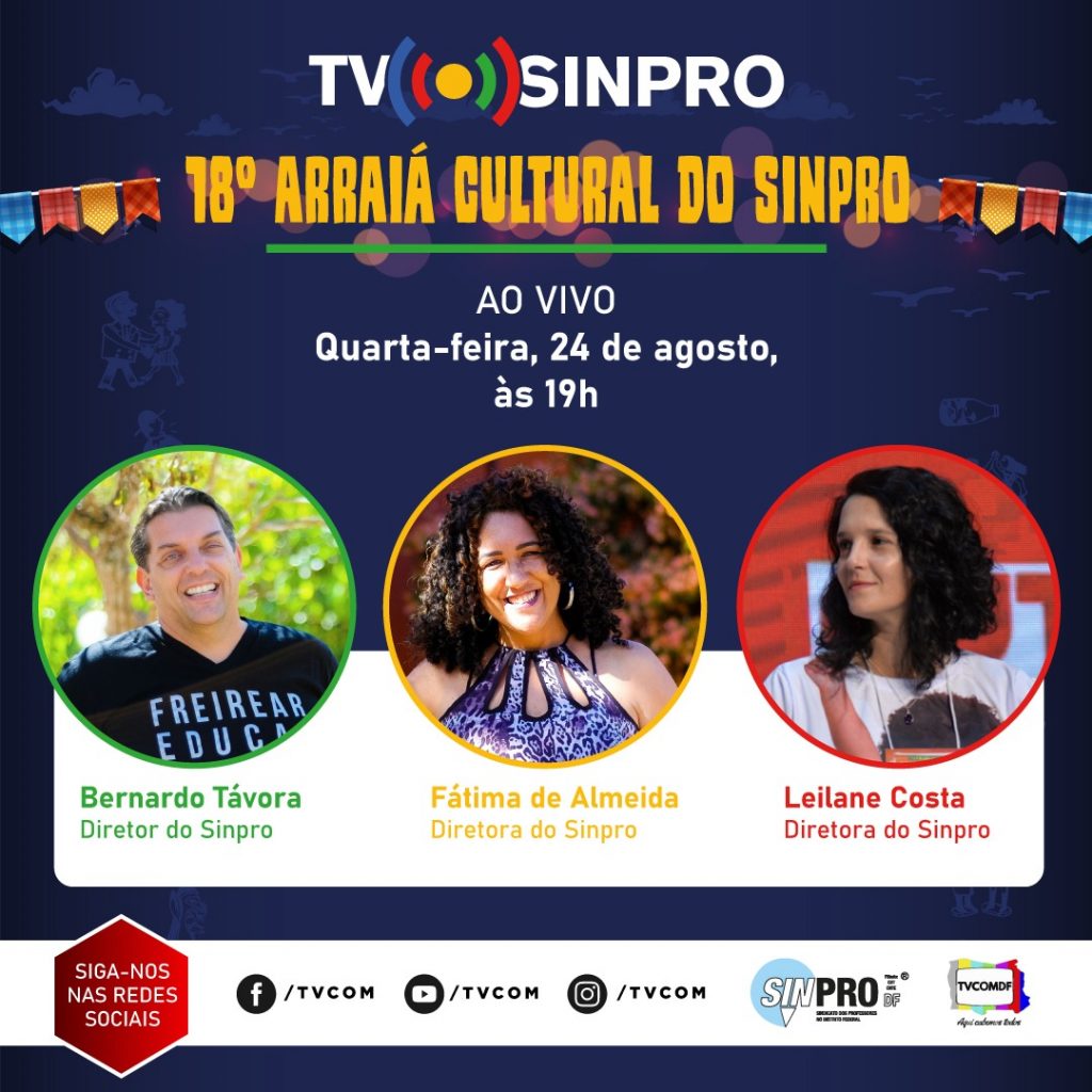 O TV Sinpro terá a participação dos diretores responsáveis pela Secretaria de Cultura do sindicato: Bernardo Távora, Fátima de Almeida e Leilane Costa, que vão contar sobre os próximos eventos da secretaria. O programa vai ao ar hoje, 24 de agosto, às 19h, na TV Comunitária e nas redes do Sinpro. Não perca!