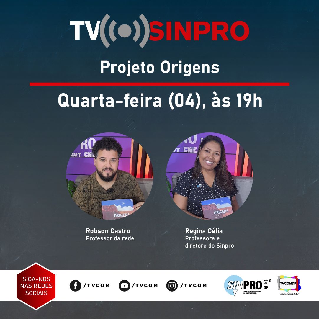 A celebração de 20 anos de trajetória artística do professor Robson Castro terá um destaque especial no TV Sinpro do dia 4 de janeiro de 2023. Com participações em projetos importantes do cenário do DF, o educador do Caseb e do CED 02 do Cruzeiro comemora duas décadas de história artística com o projeto Origens, primeiro trabalho solo projetado em espaços públicos do Distrito Federal. O programa terá a participação da diretora do Sinpro Regina Célia.
